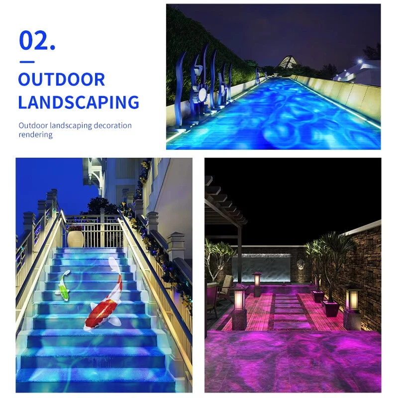 Dynamic Water Wave Gobo Projector LED, 5-Color IP67 Waterproof – 40W-600W