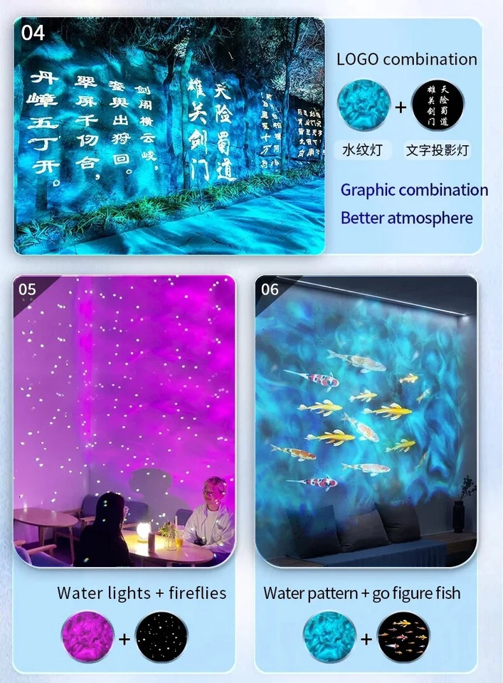 1. This water wave light is suitable for any space,recreating the splendid natural beauty of the sparkling ocean. The water ripple effect automatically moves to create a wave effect, allowing you to feel underwater and embrace the sea.Create a romantic, casual and comfortable atmosphere to relax your body and mind.