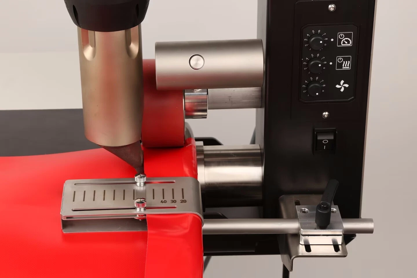 The efficient HEMTEK ST welding machine welds hems from start to finish. It's perfect for small and medium-sized banners made of PVC, PE, PP and other thermoplastics. The hem guide on HEMTEK ST comes in three sizes: 20 mm, 30 mm and 40 mm and opens up to 100 mm (3.9 inches) with piping.