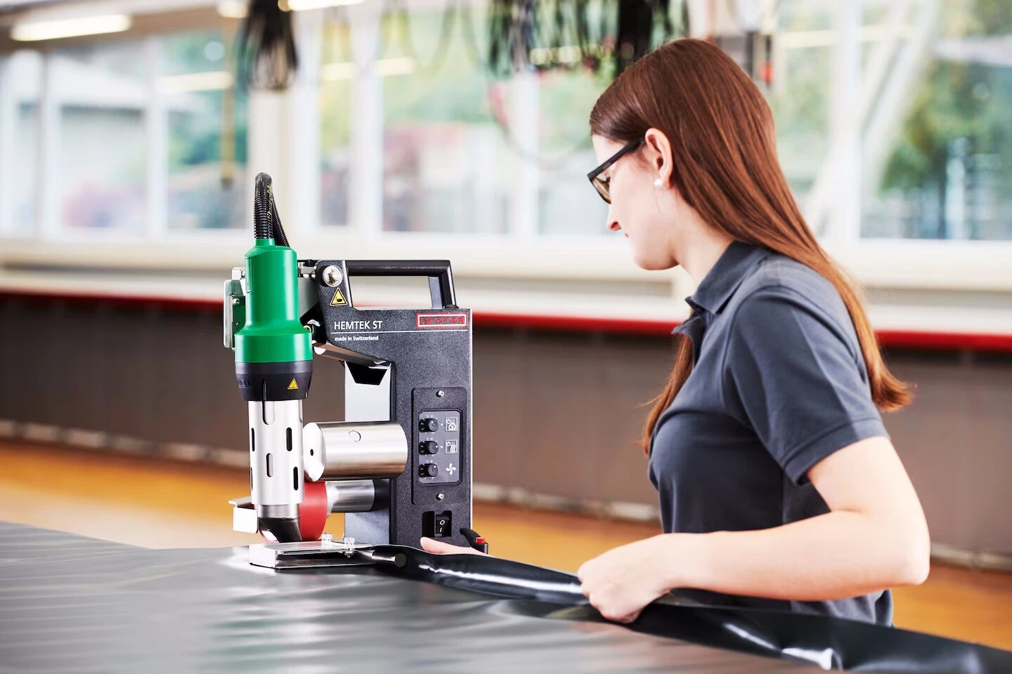 The HEMTEK ST can be used for a wide range of applications and is extremely intuitive to use. A high-quality, stress-free welding experience is guaranteed, thanks to its foot pedal, which allows both hands remain free to guide the material. The welding machine takes up very little space, can be set up quickly and is ready to weld as soon as it's assembled. HEMTEK ST doesn’t require any material preparation prior to welding or any welding with a heat gun afterwards. Hems on banners or tarpaulins can be welded from start to finish in one welding process.