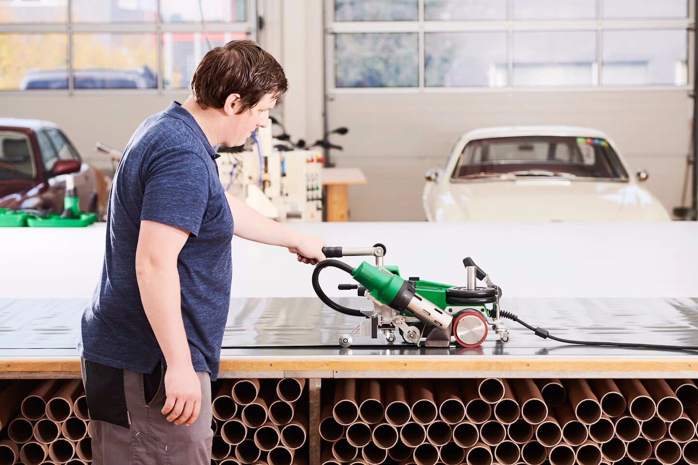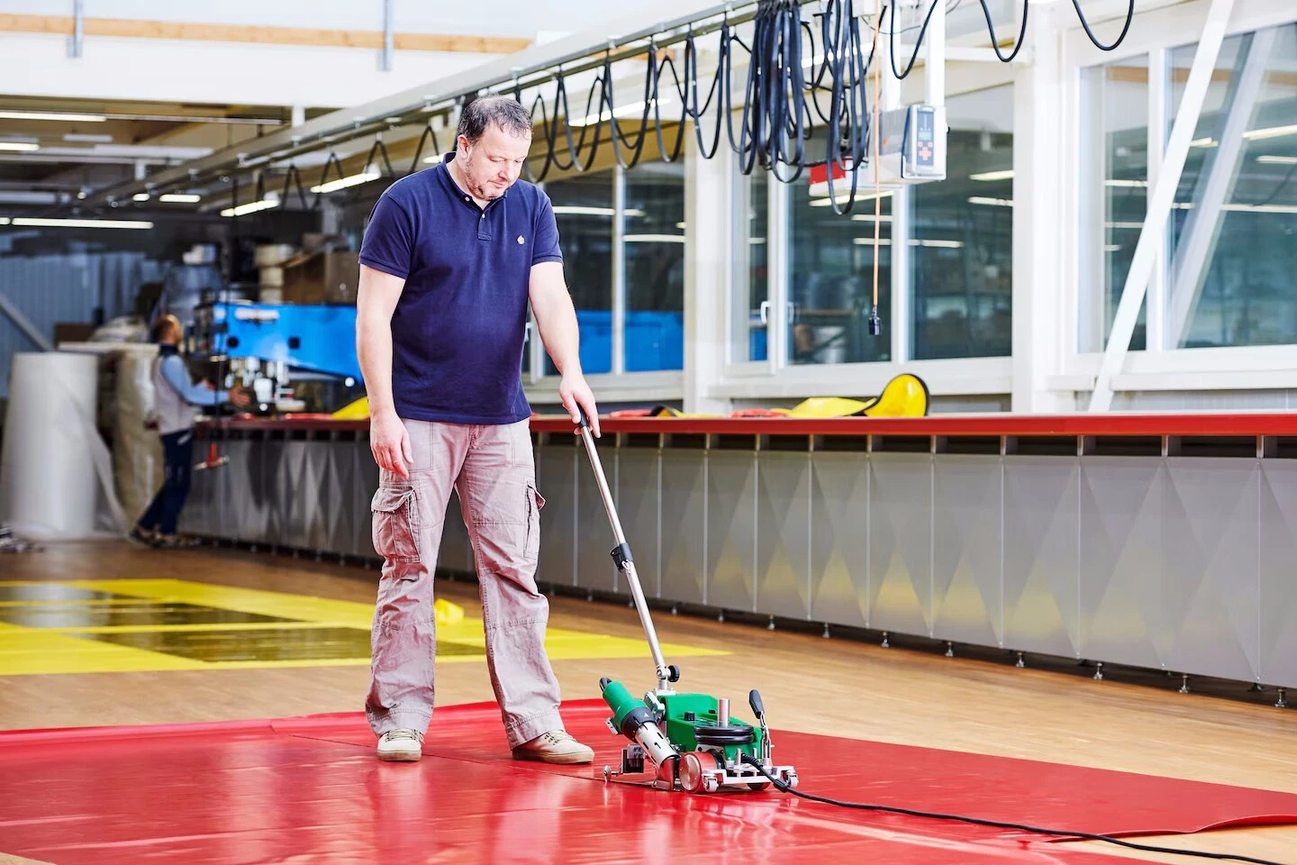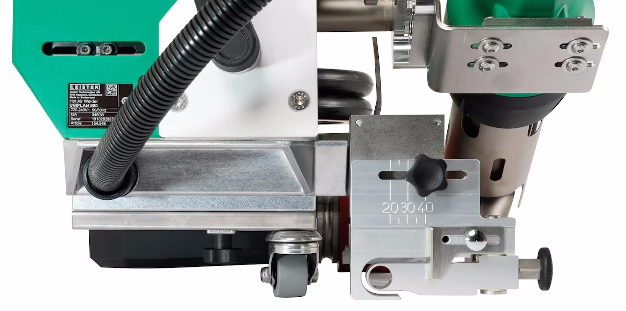 The UNIPLAN 500 automatic welder has a low-maintenance, brushless motor, a hot air blower with 18,000 rpm for high welding power and is perfectly suited for overlap, hem and piping on various industrial fabrics. The device is easy to use on the table, as well as on the floor. The integrated lifting device makes it easier to prepare and feed the material before welding.