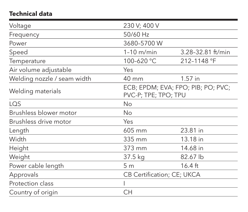 Leister VARIMAT 300 Flat Roof Welding Machine 230V/3680W, 400V/5700W, 40mm