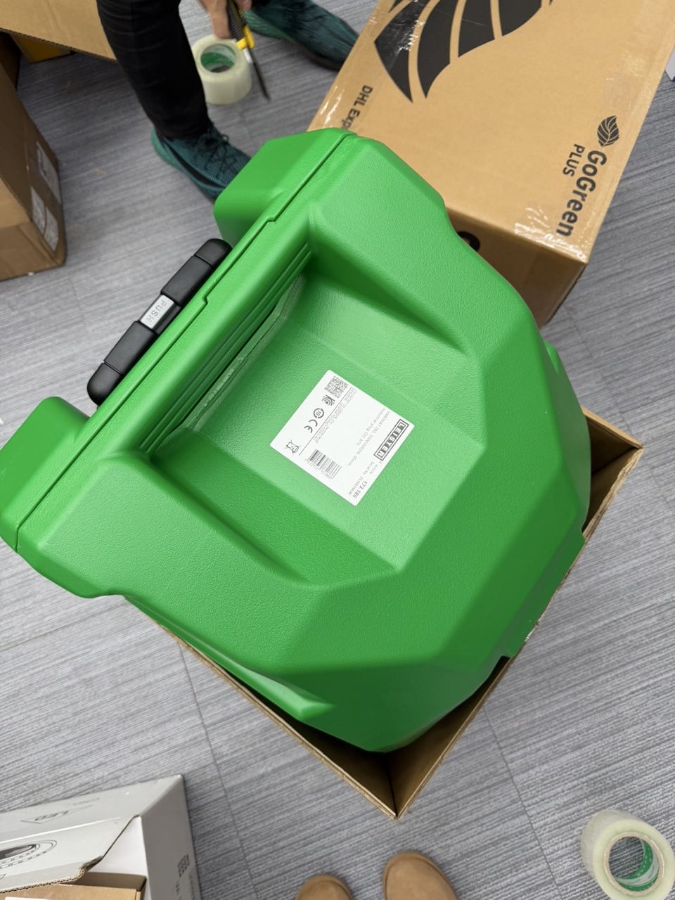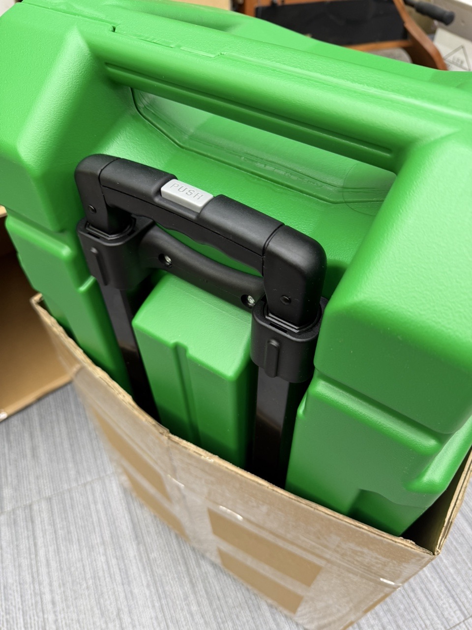 In the practical rolling transport case with telescopic handle, the VARIMAT 300 from Leister is always safely packed and ergonomically transportable.