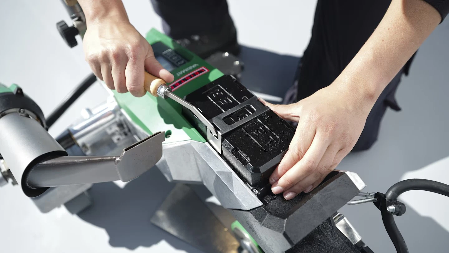 Like its "big brother", the VARIMAT 700 automatic welder, the VARIMAT 500 is designed for many different applications: Whether for roofing work or swimming pool construction, the waterproofing membranes are processed reliably and quickly. Truck tarpaulins and advertising banners can also be welded perfectly with the VARIMAT 500. Its air partitioning concept, which is decoupled from the pressure roller, prevents wrinkles during welding. This ensures both optimal water flow and attractive appearance. The Monitored Welding Assistant gives users the assurance that the weld meets the high quality requirements of the customer. If the set welding parameters (temperature, speed and air volume) are exceeded, the VARIMAT 500 signals this with an acoustic and optical signal. In the event of undervoltage up to a maximum of 20 %, the automatic roof welding machine continues to reach the required welding temperature thanks to its power management. If the undervoltage is greater than 20 %, the VARIMAT 500 switches off automatically because the quality of the weld may then no longer be guaranteed. To ensure that the correct welding parameters are set, Leister offers reliable welding profiles and a "library" of proven welding recipes in the myLeister app. At the customer’s request, the VARIMAT 500 was equipped with an LED work light. Thus, welding of the roofing membranes is possible even at night or at dusk, because the welding zone is optimally illuminated. The large, user-friendly display and its rotating adjustment knob make the VARIMAT 500 intuitive to operate. Service requirements are low due to the brushless, maintenance-free hot air blower, even under intensive load. Hybrid ceramic bearings in the blower motors ensure a long service life. The VARIMAT 500 can be transported easily, ergonomically and safely in the sturdy rolling transport case (included in delivery). In order to cover individual customer requirements, the VARIMAT is available in two further versions: VARIMAT 700 and VARIMAT 300.