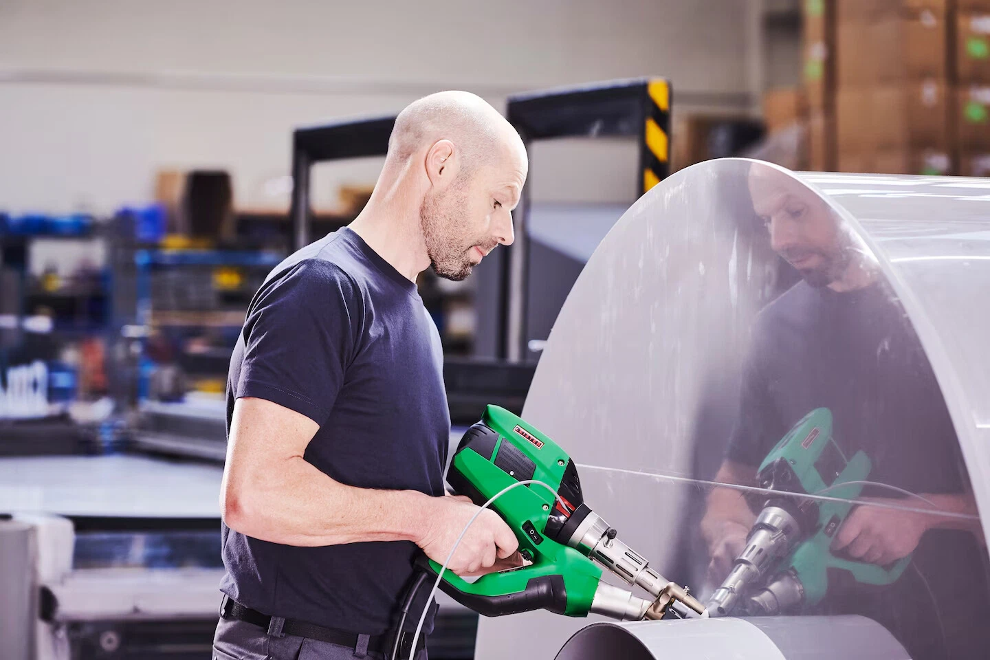 The air volume of the extruder is freely adjustable and and empowers the user with application specific, customized welding.